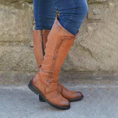 Women's Vintage Leather Zipper High Boots