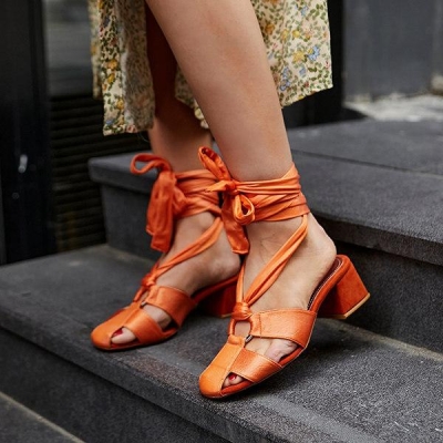 Women's Vintage Hollow-out Straps Chunky Heels