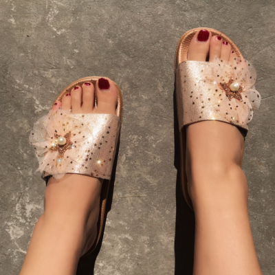 Flat Heel Pearl Sandals