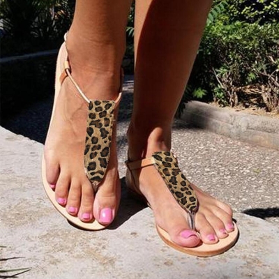 Leopard Print Flip Flops for Women - Open Toe Casual Sandals with Back Zipper