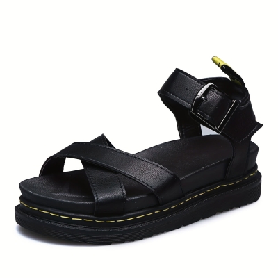 Open Toe Adjustable Buckle Casual Flat Heel Sandals