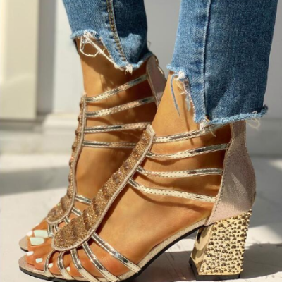 2020 Summer Open Toe Chunky Heels Women Sandals