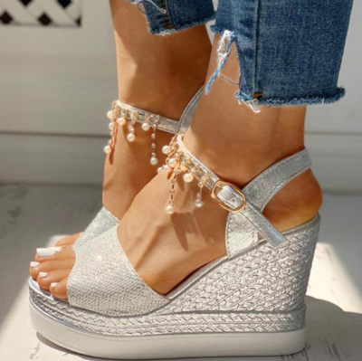2020 New Women Summer Bead Studded Detail Platform Wedge Sandals