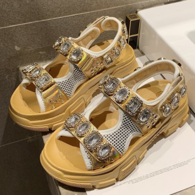 2020 New Woman Summer Rhinestone Thick Bottom Muffin Fairy High Heels Sandals