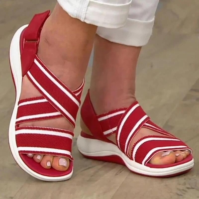 Women Casual Comfortable Elastic Band Magic Tape Beach Flat Sandals