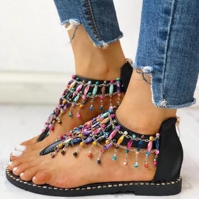 Bohemian Rhinestone Beaded Ethnic Flip-Flop Sandals