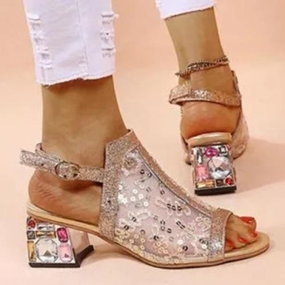 Women's Buckle Slingbacks Fabric Chunky Heel Sandals