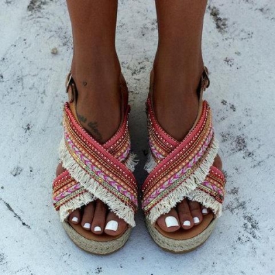 Women's Handmade Platform Peep Toe X-strap Sandals With Adjustable Buckle