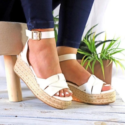 Buckle Platform Open Toe Ankle Strap Plain Platform Sandals