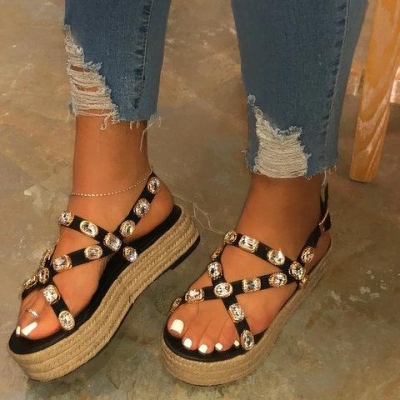 Buckle Strap Rhinestone Women Platform Espadrille Sandals