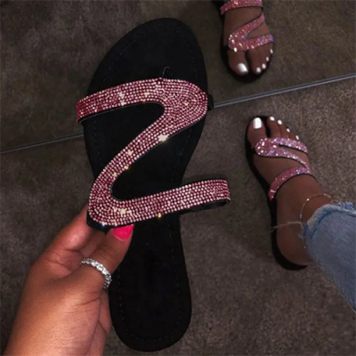 Women's Slip-On Flat With Open Toe Rhinestone Sandals