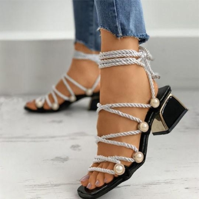 Women's Stylish Rhinestone Bow Strap Chunky Heel Sandals
