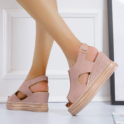 Women's Suede Hollow Out Peep Toe Buckle Strap Platform Sandals