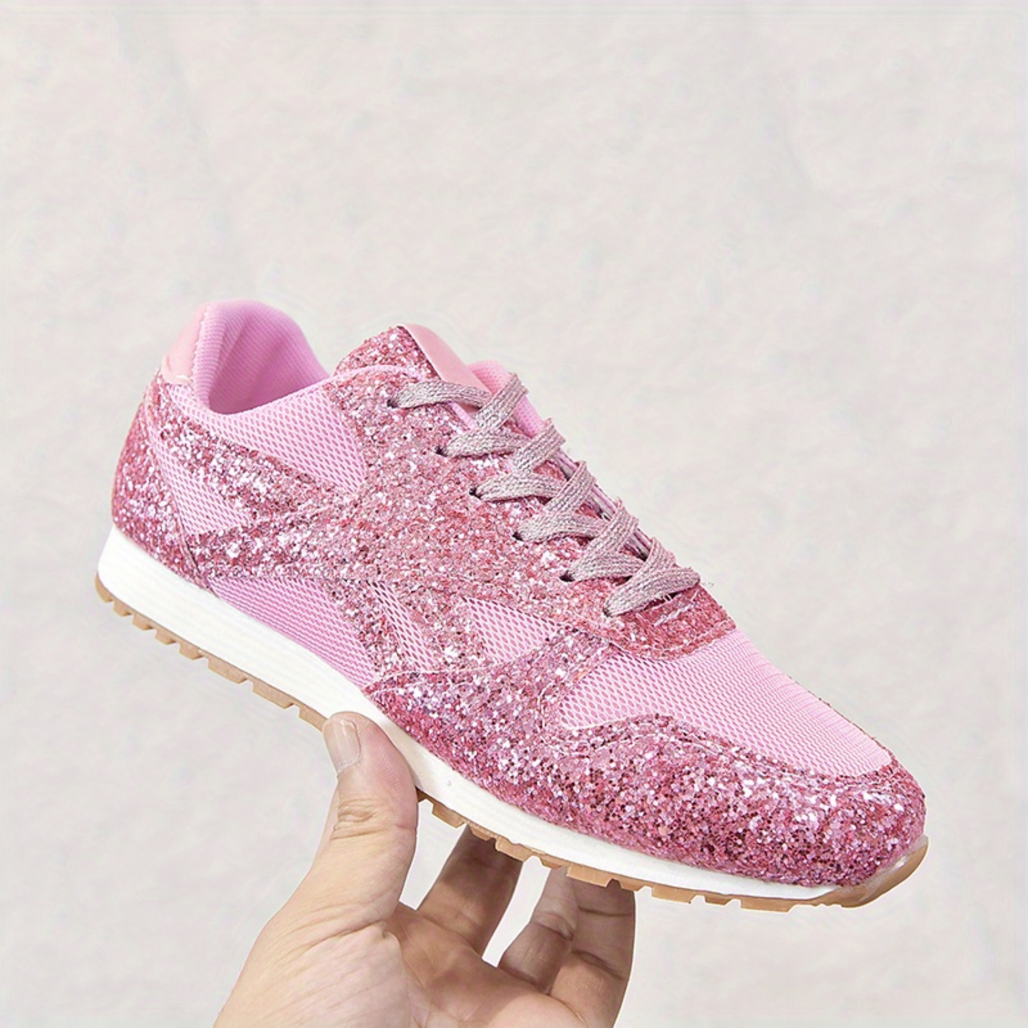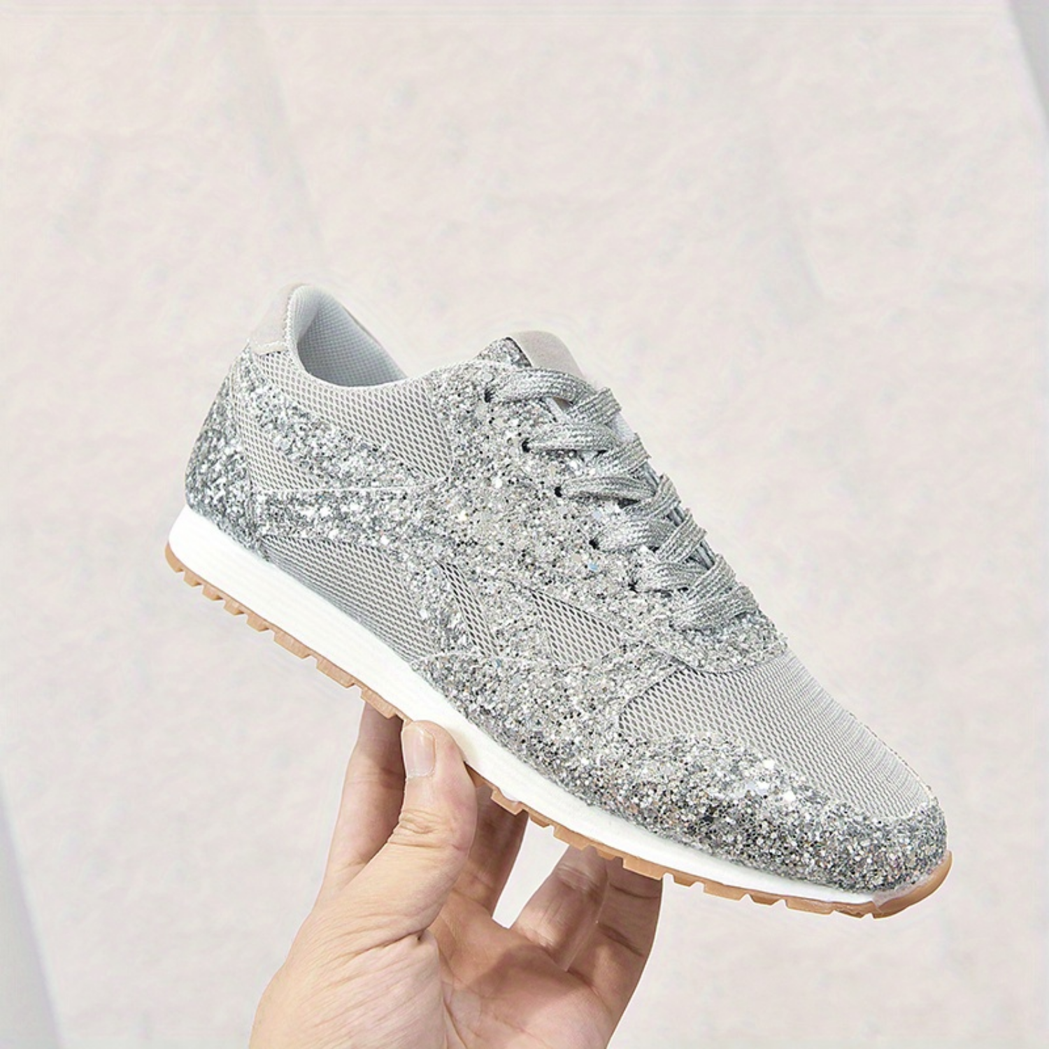 Women's Sequ Sports Shoes, Fashionable Mesh Low Top Lace Up Running Shoes, Outdoor Non Slip Sneakers