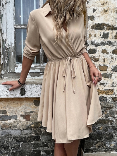 Hebilla Sólida De Rayas Elegantes De Moda Con Cinturón Camisa De Collar A Line Dresses