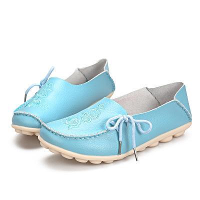 [Flash Deals] Women Floral Printed Soft Flat Loafers Lace Up Slip On Shoes
