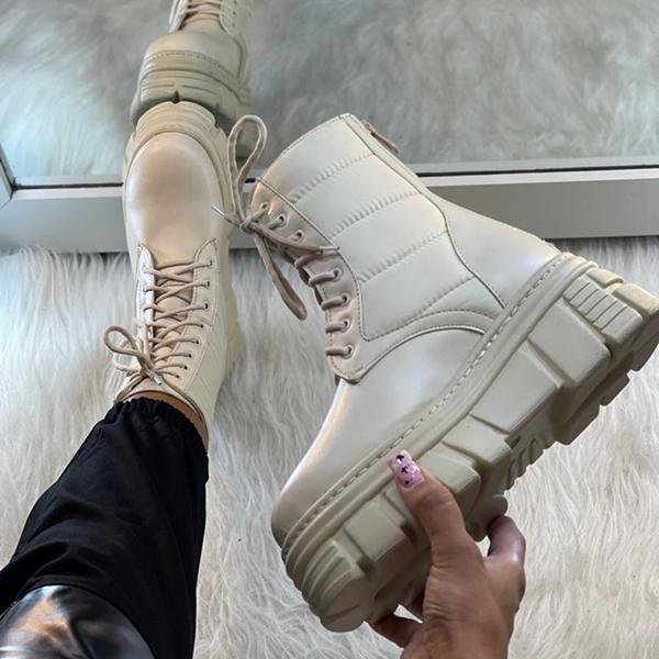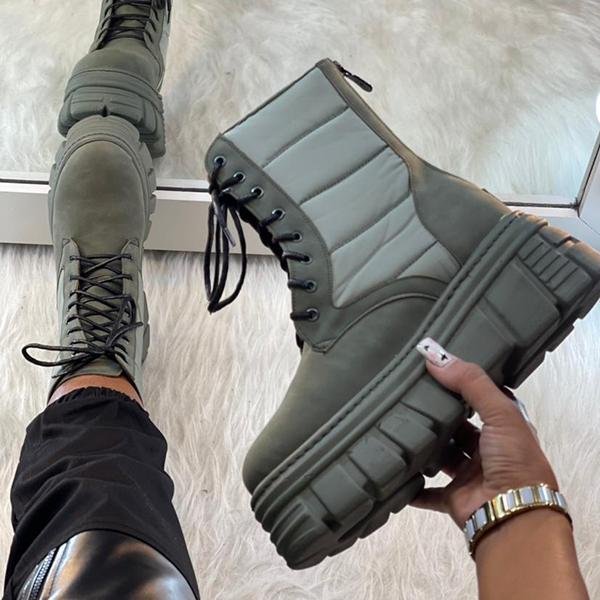 Lace Up Round Toe Platform Boots