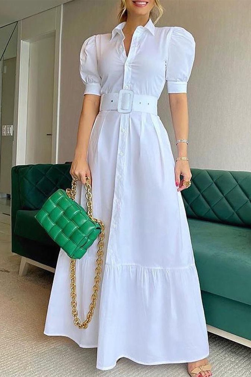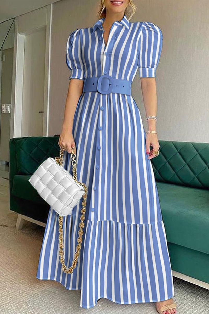 Boucle pleine rayée élégante de mode avec ceinture Shirt Collier A Line Robes
