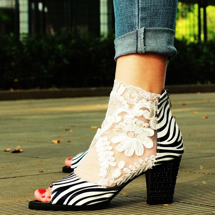 Zipper Chunky Heel Peep Toe Heel Covering High-Cut Upper Sandals