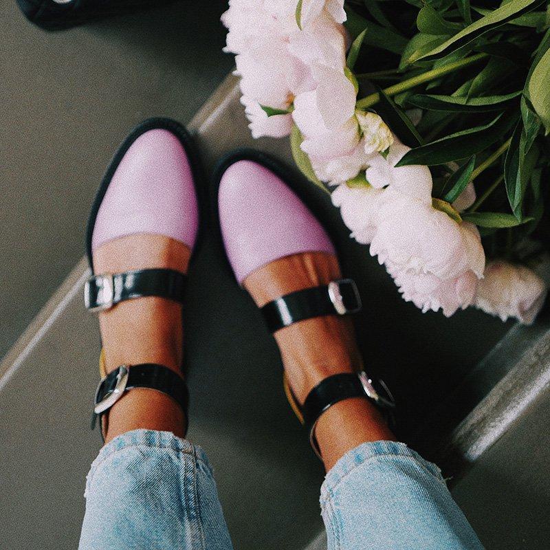 2019 Fashion Trends Low Heel Color block Buckle Flats