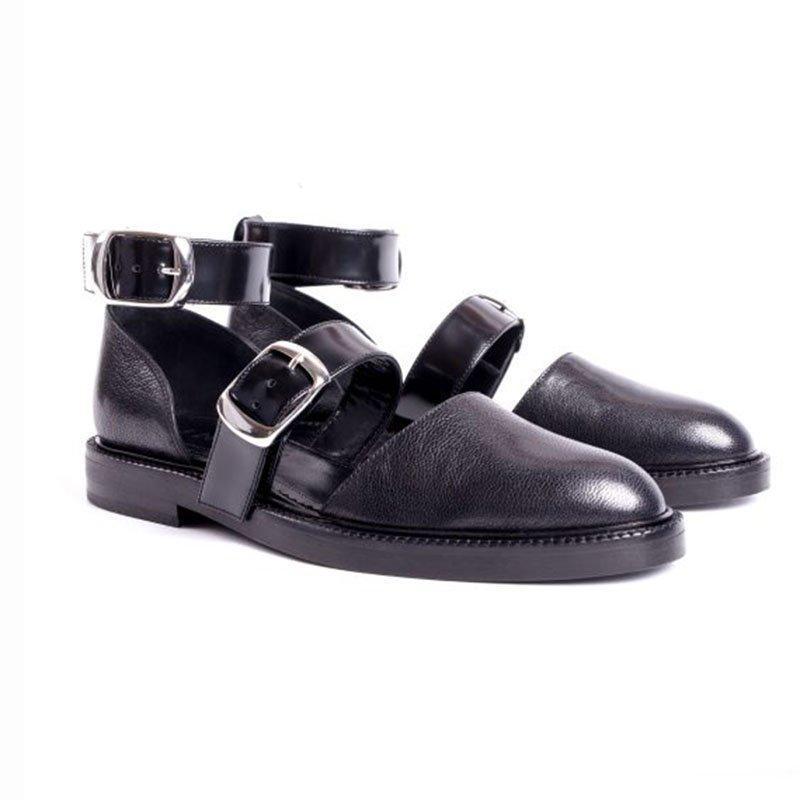 Black T-Strap Sandals: Rome Style, Ankle Buckle, Non-Slip