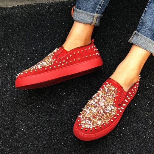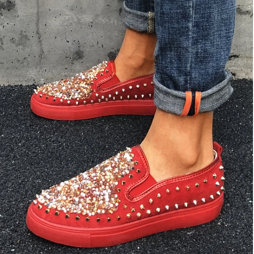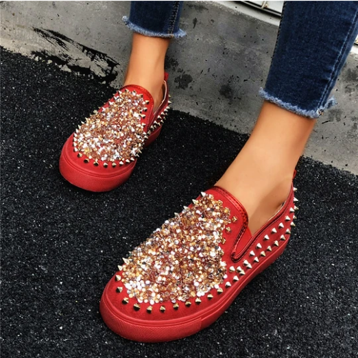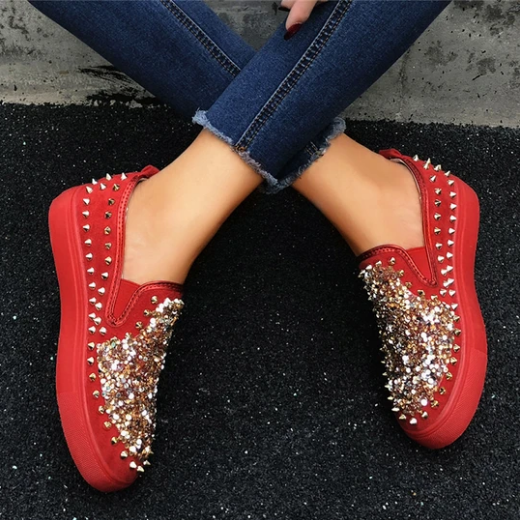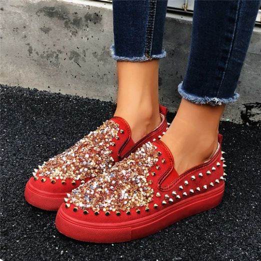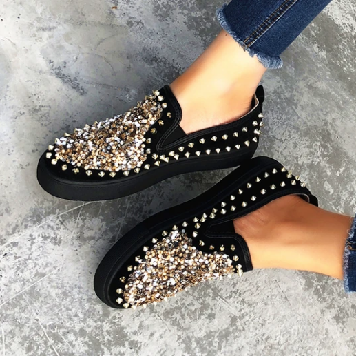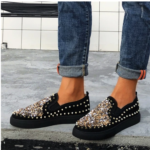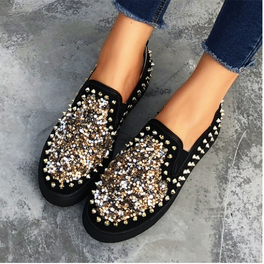 2020 New And Fashional Sneakers Women Daily Fashion Sequin Rivet Slip-on Loafers