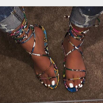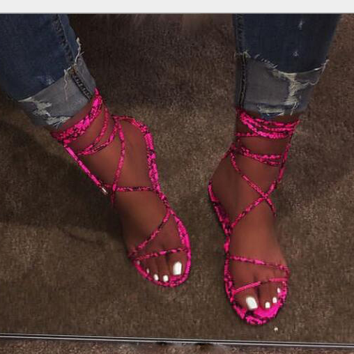 2020 New And Fashional Woman Snake Skin Flat Sandals