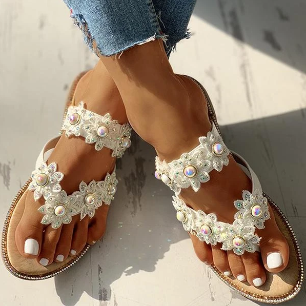 2020 New And Fashional Woman Sofiawears Studded Toe Post Flat Slipper Sandals