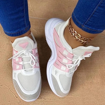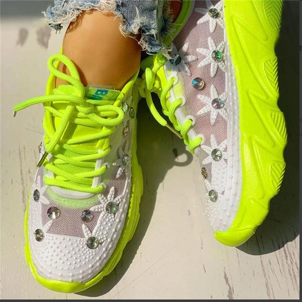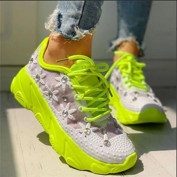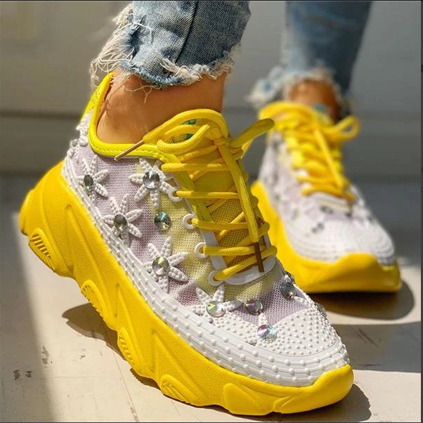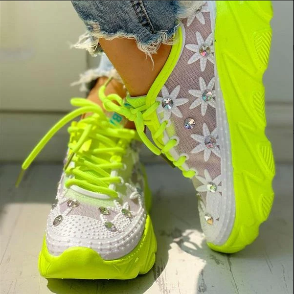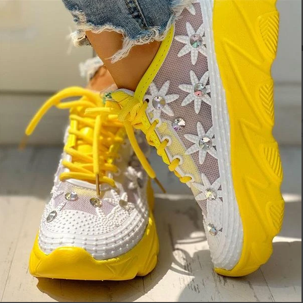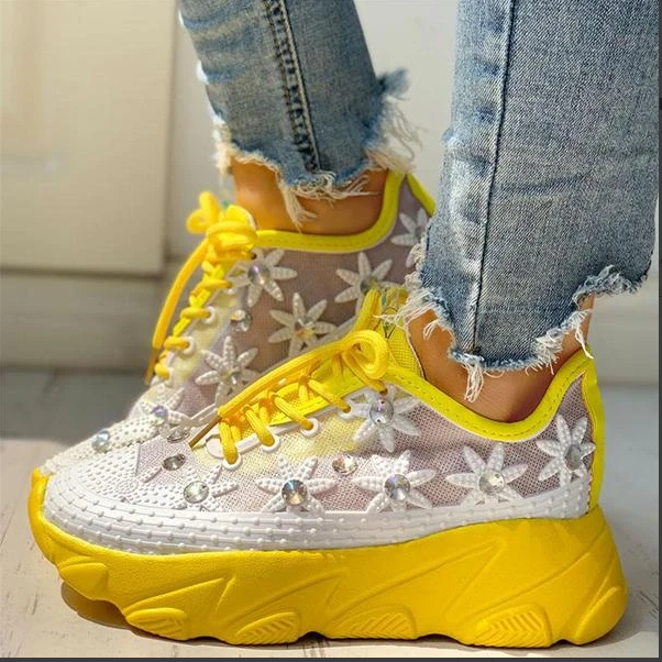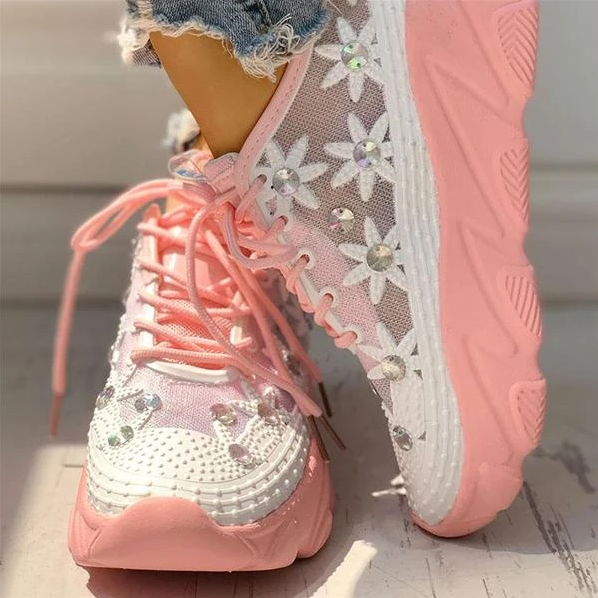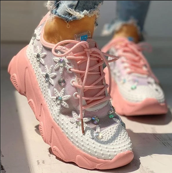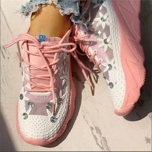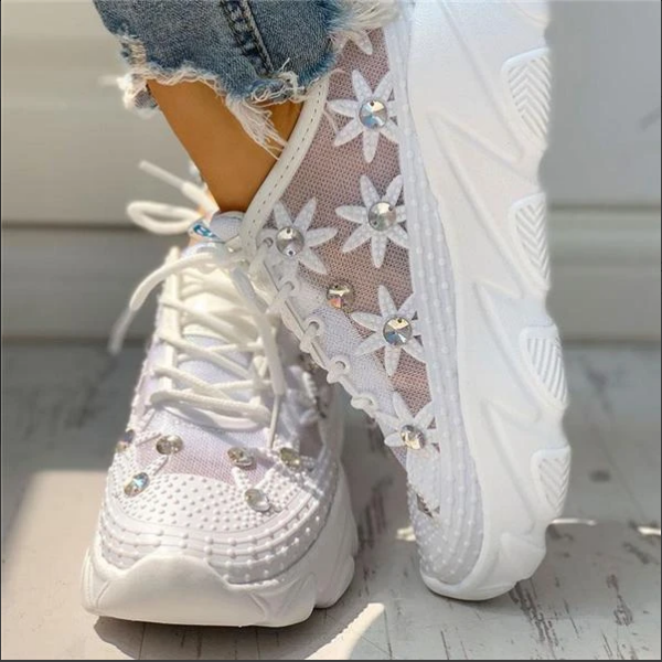 2020 New And Fashional Women's Mesh Rhinestone Platform With Wedges And Hollowed Out Sneakers