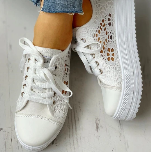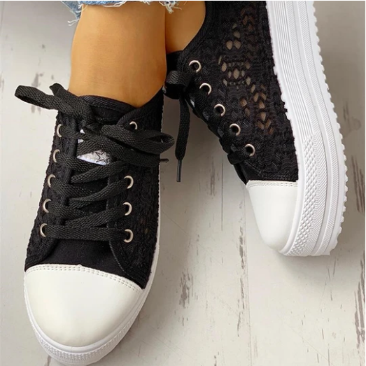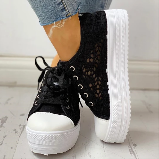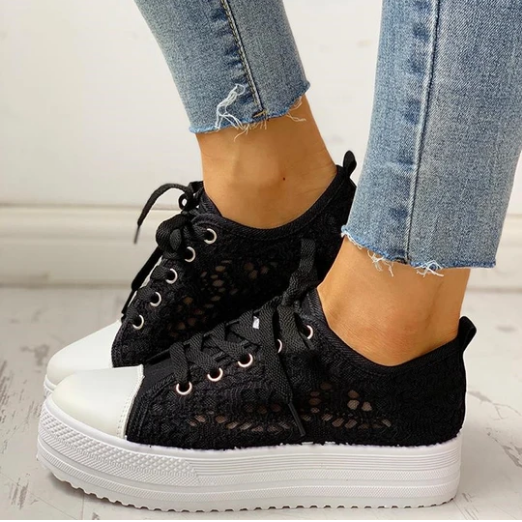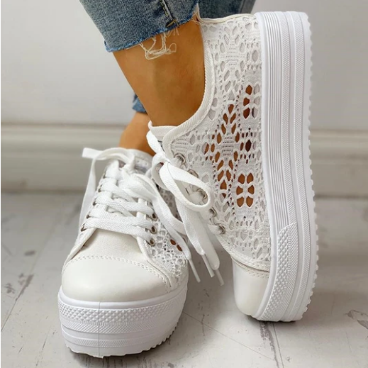 2020 New Fashion Canvas Sneakers Women's Casual Hollow Design Platform Shoes