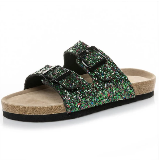 2020 New Fashion Women Colorful Sequin Buckle Flat Sandals