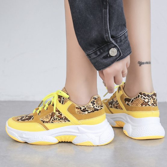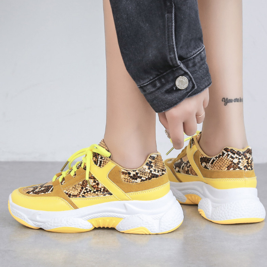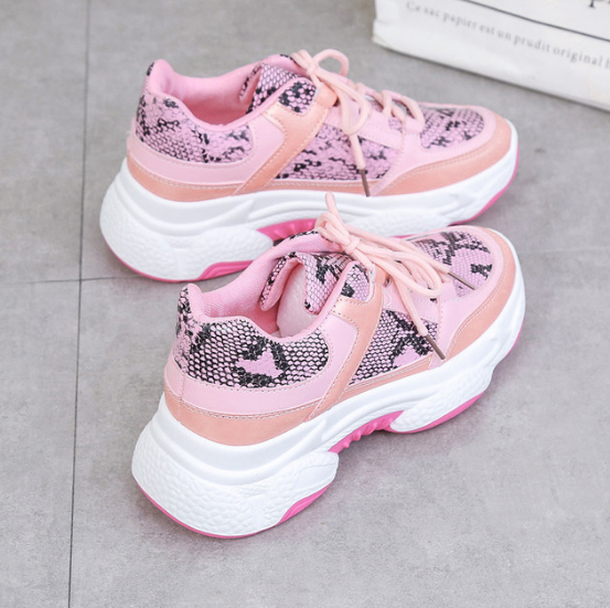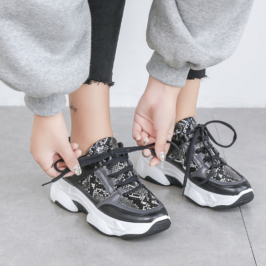 2020 New Woman Snakeskin Pattern Chunky Sneakers