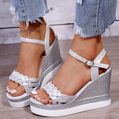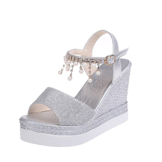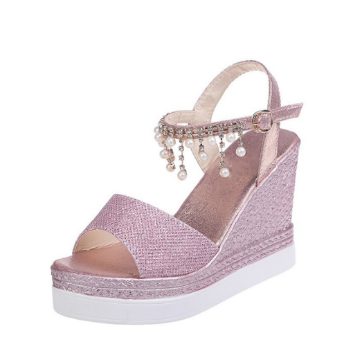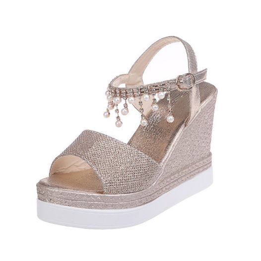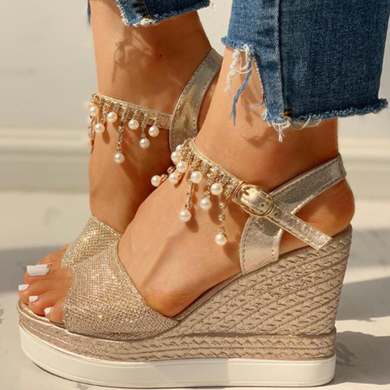2020 New Women Summer Bead Studded Detail Platform Wedge Sandals