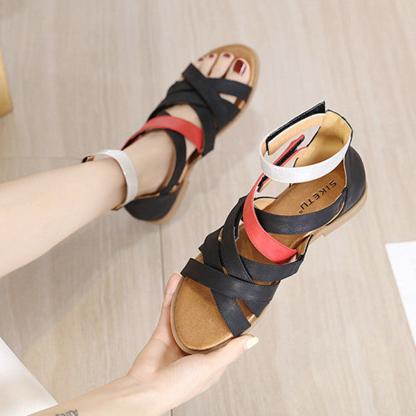 2022 New Women's Roman Spliced strap Flat sandals