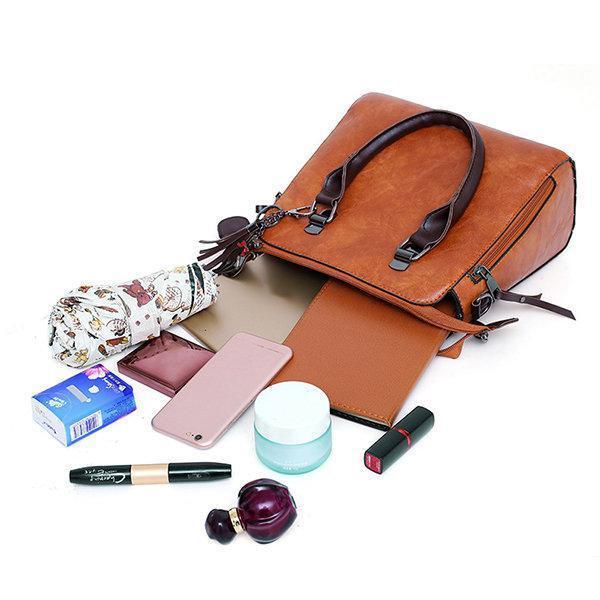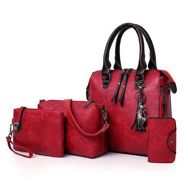 4 PCS Vintage Multi-function Handbag Faux Leather Crossbody Bag