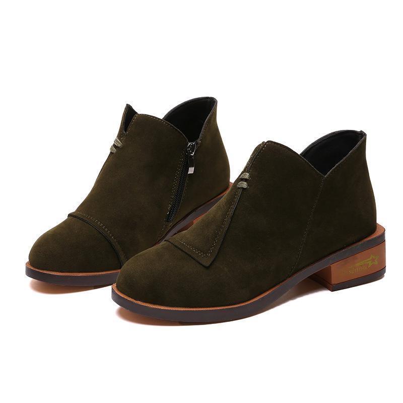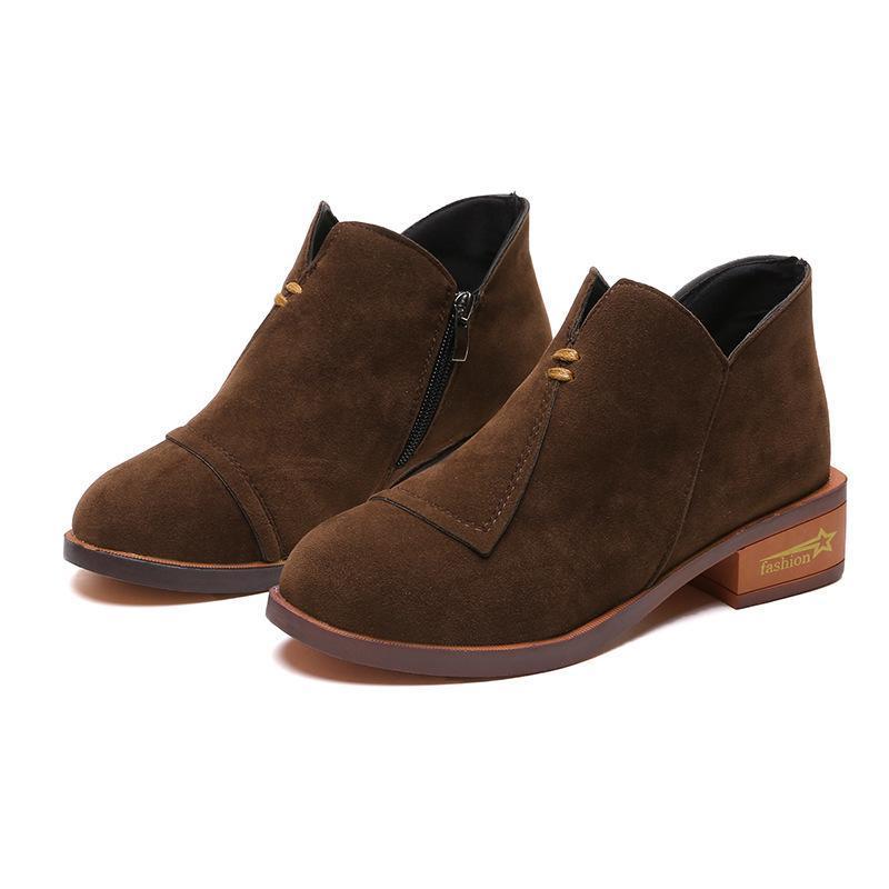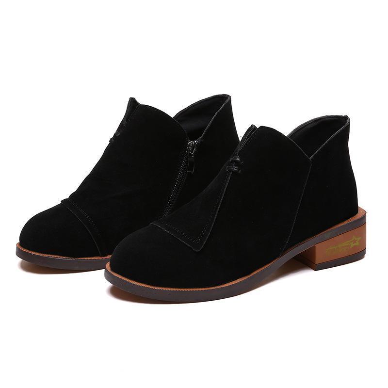 Ankle Solid Rounded Toe Short Boots Single Shoes Elasticated Tab Low Block Flat Heel