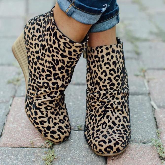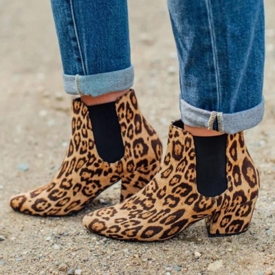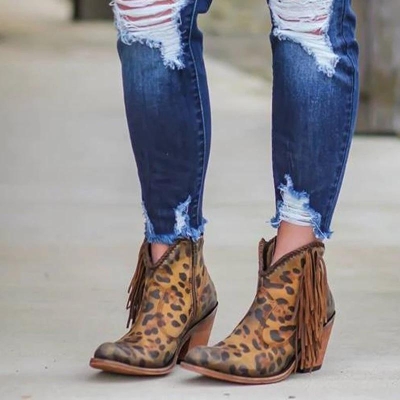Fashion Leopard Tassel Low Heel Shoes Non-Slip Boots