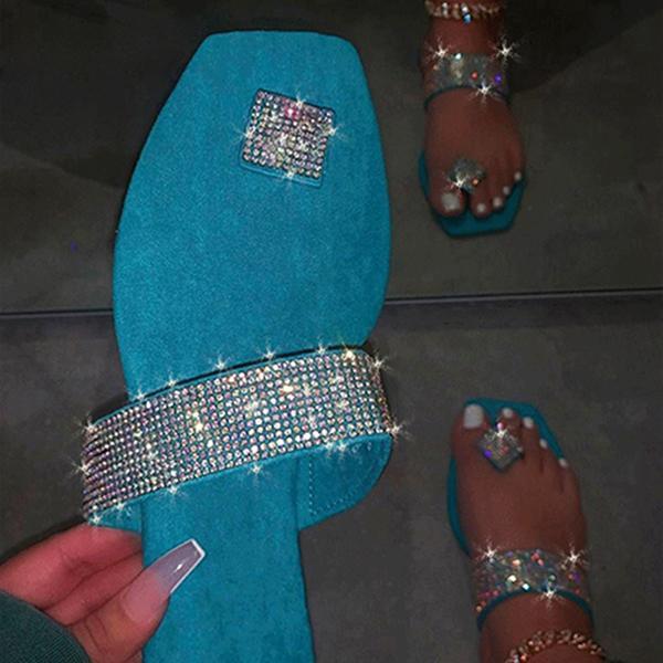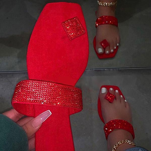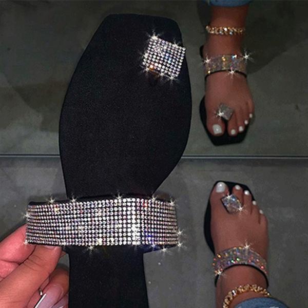 Women Toe Ring Rhinestone Slip-on Sandal