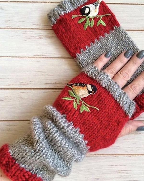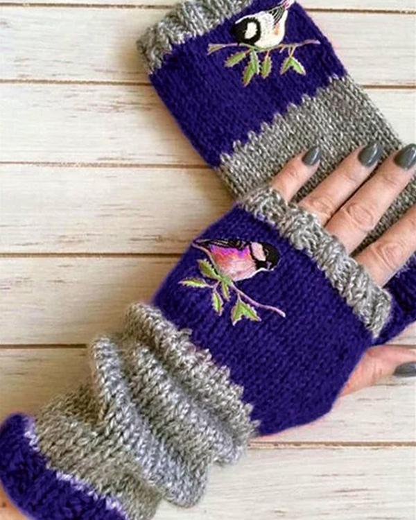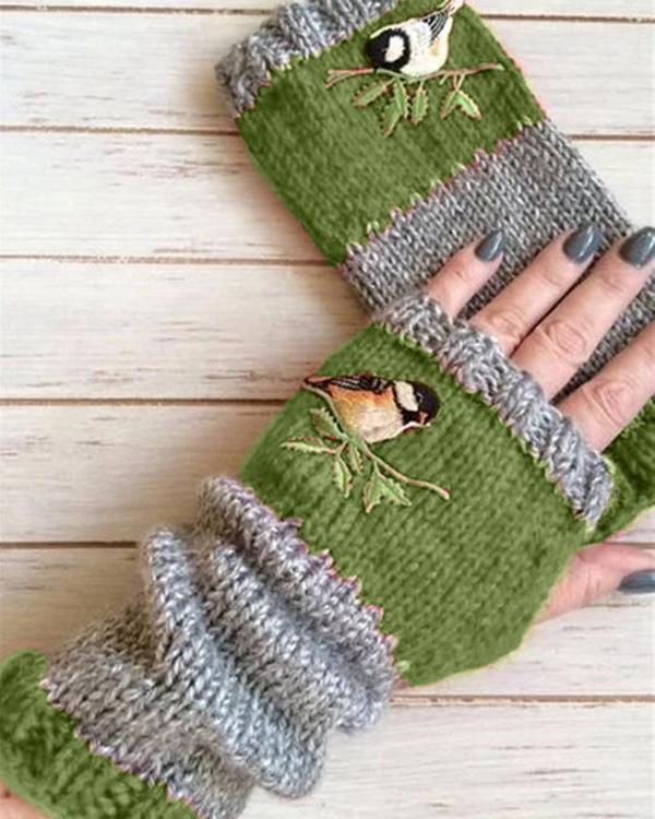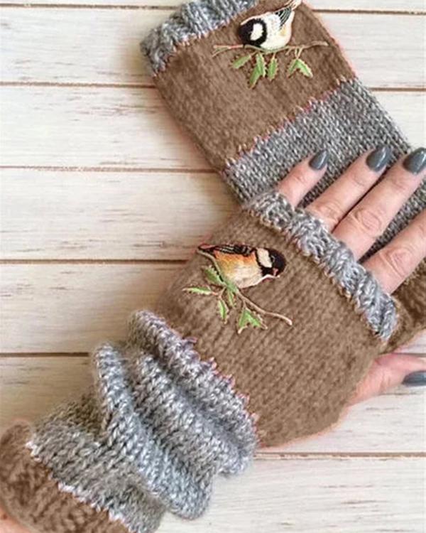 Autumn Winter Casual Basic Flora Knitted Gloves