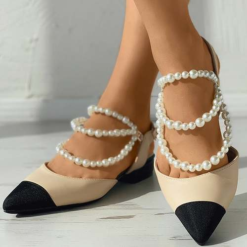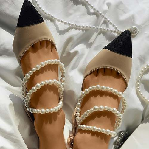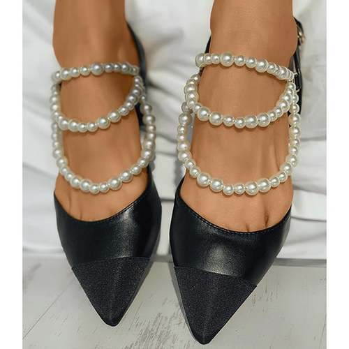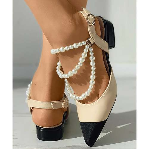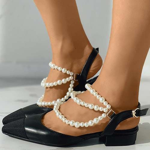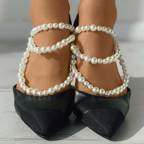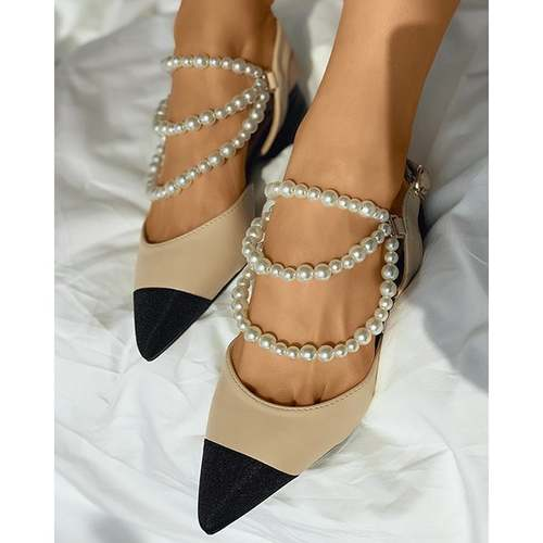Beaded Strap Slingback Pointed Toe Chunky Heels