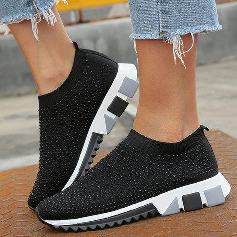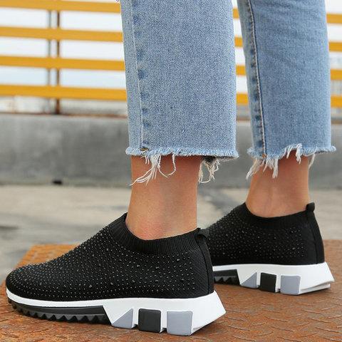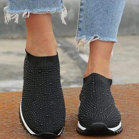 Black All Season Slip-On Women's Rhinestone Sneakers