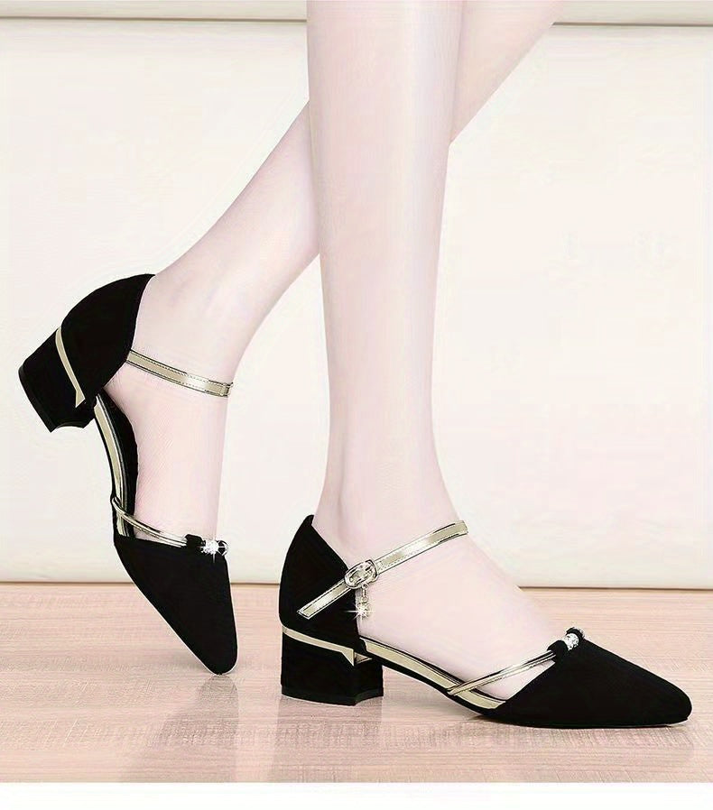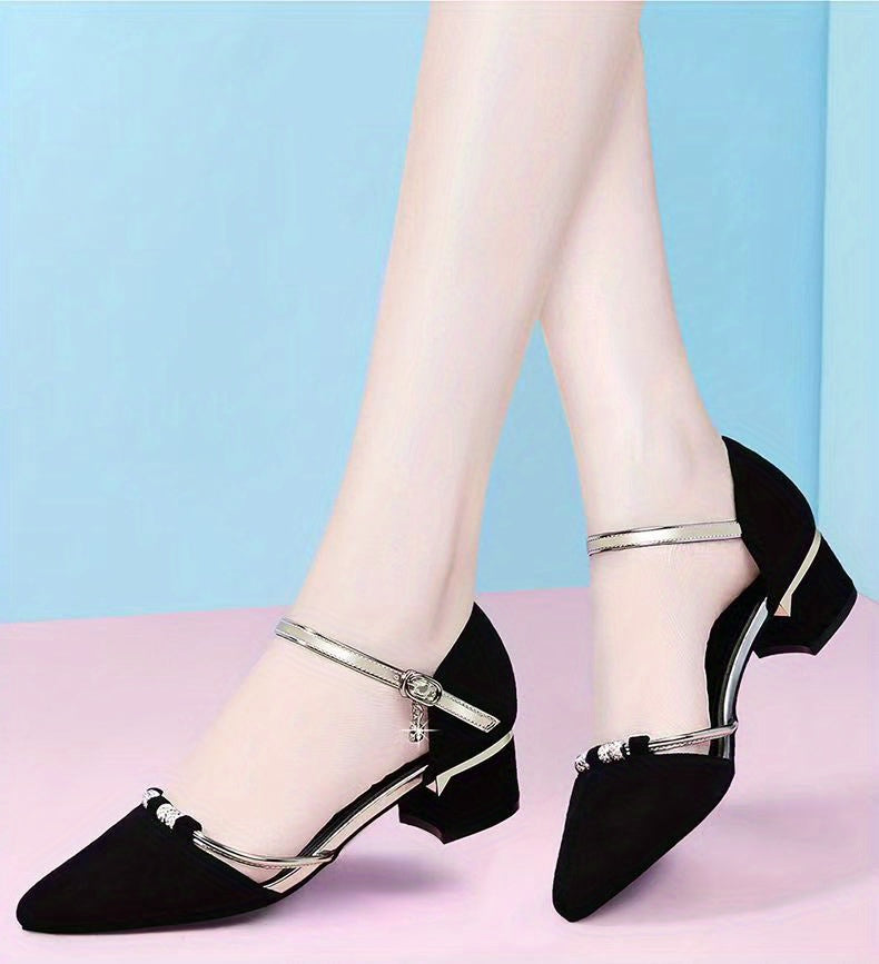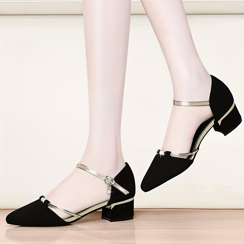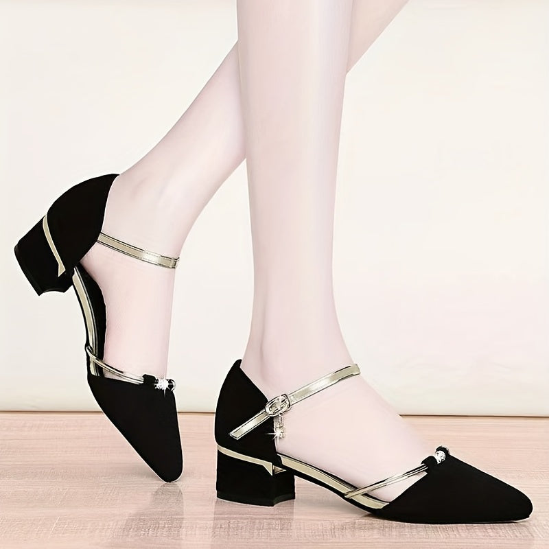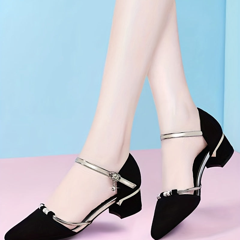 Black Buckle Strap Heels - Comfortable Women's D'Orsay Shoes