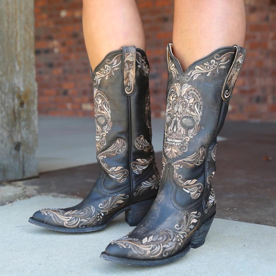 Black Vintage Low Heel Boots