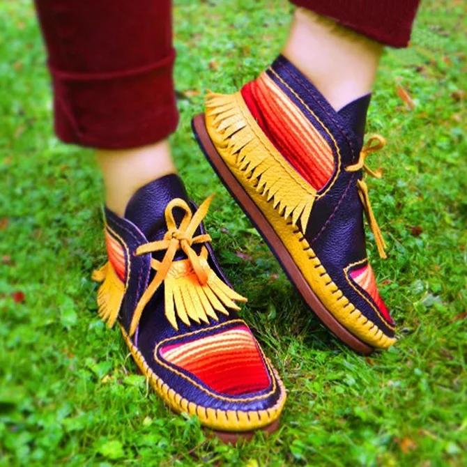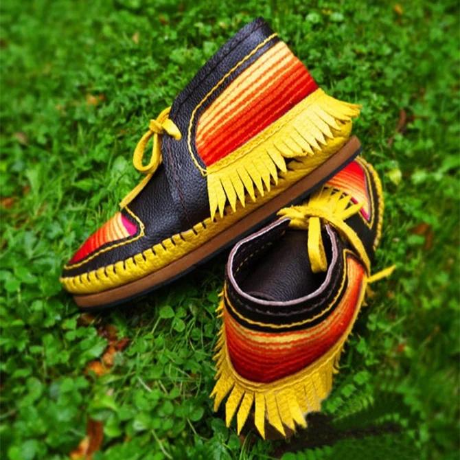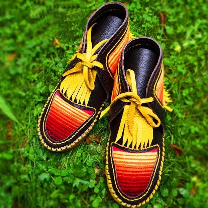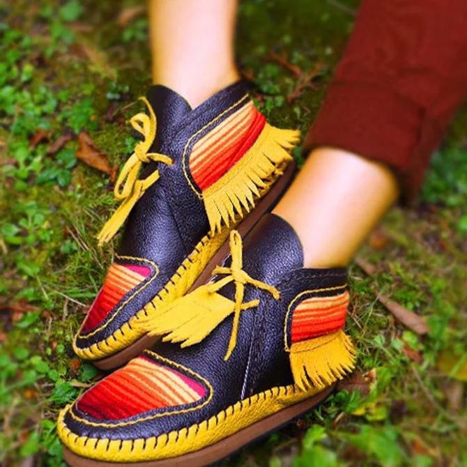 Black-Yellow Seaside Artificial Leather Flat Heel Tassel Boots