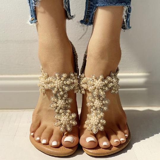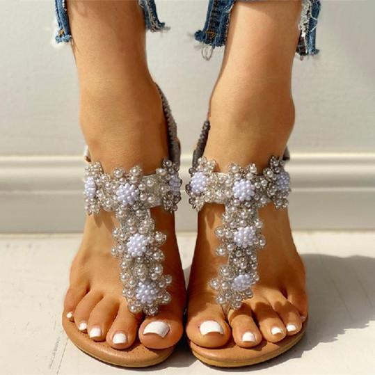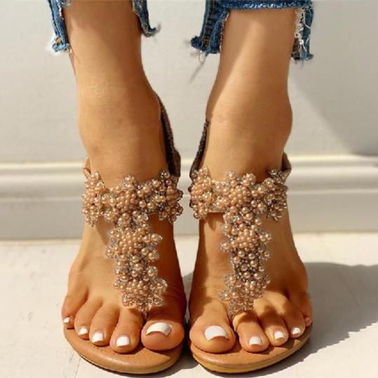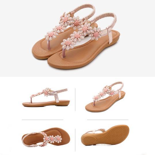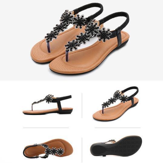 Bohemian Rhinestone Beaded Ethnic Flip-Flop Sandals