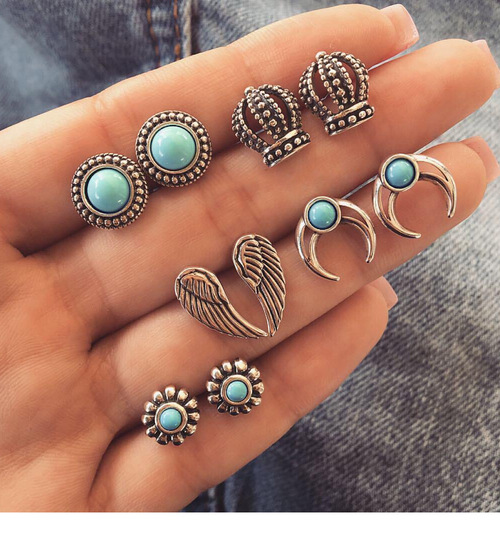 Boho Turquoise Stud Earring Set