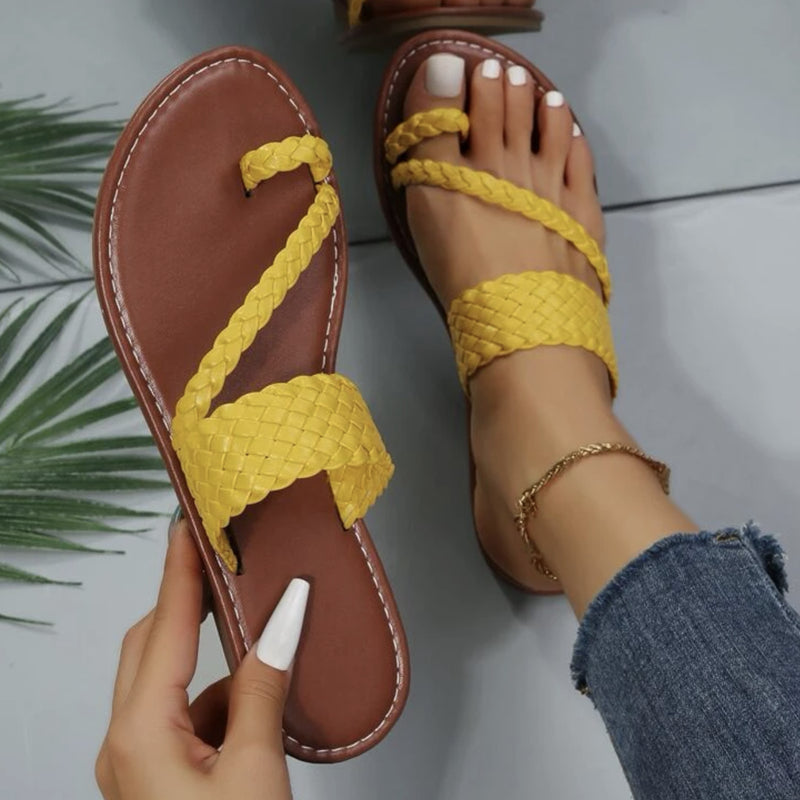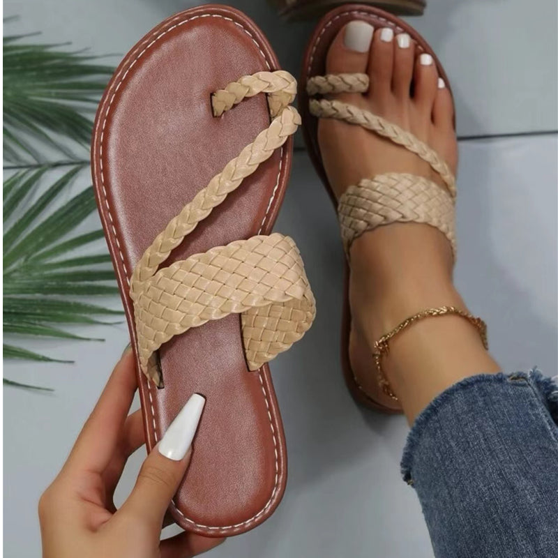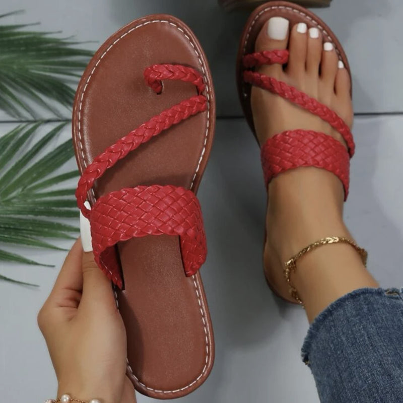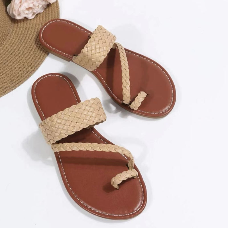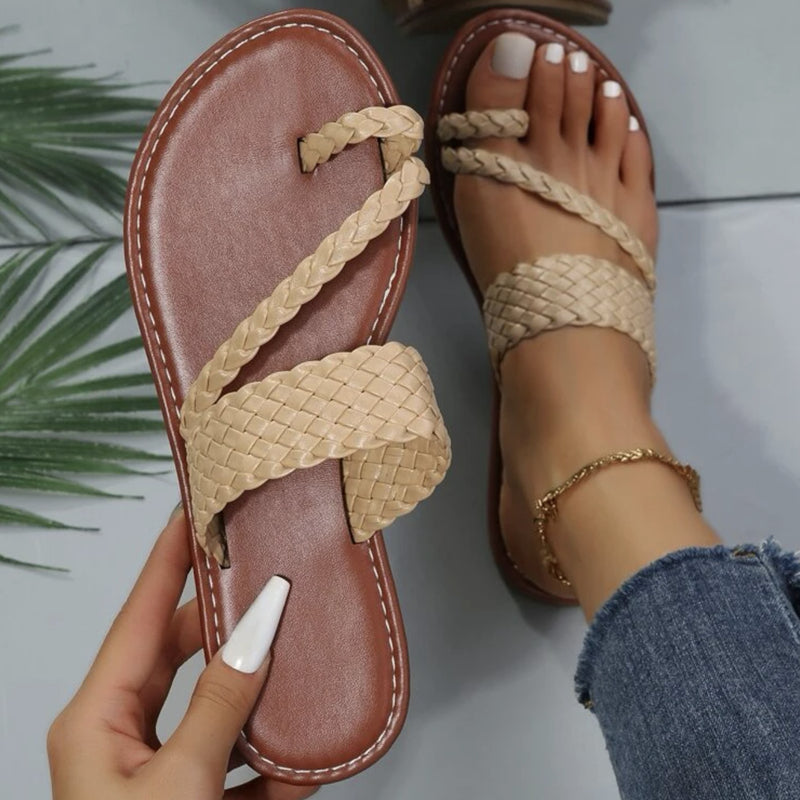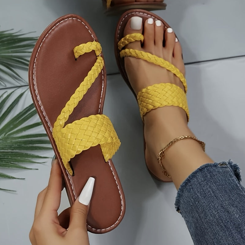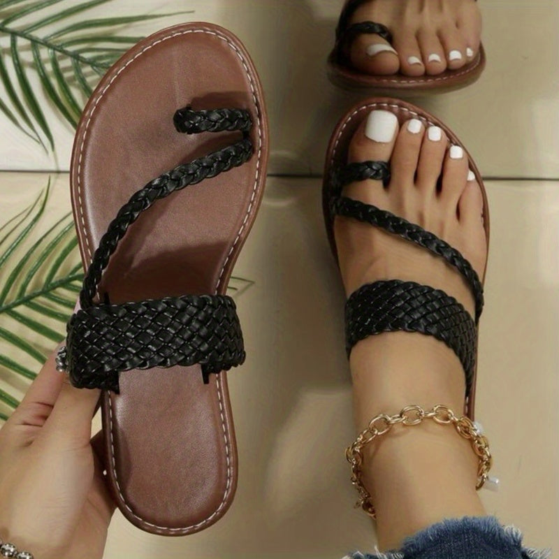 Braided Thong Sandals for Women - Slip-on Flat Design in Solid Colors