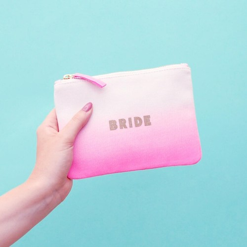 Bride Pouch - Bride Clutch Bag - Wedding Makeup Bag - Small Engagement Gift - Bridal Party - Ombre Bride Pouch - Alphabet Bags