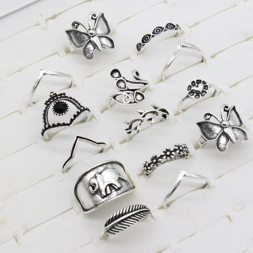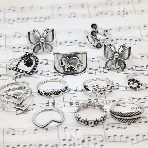Butterfly Elephant 14PCS Ring Set