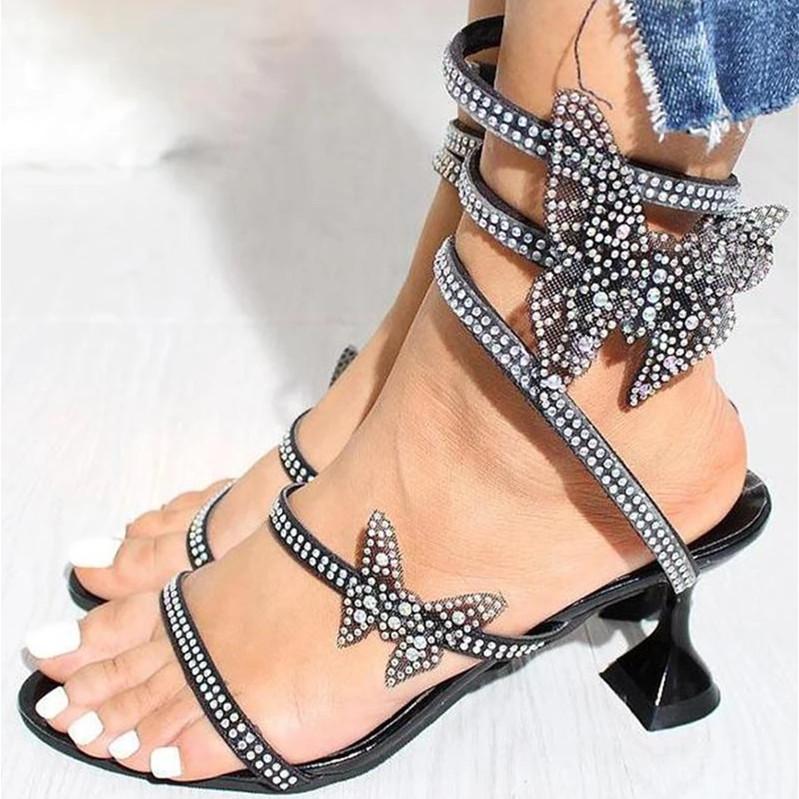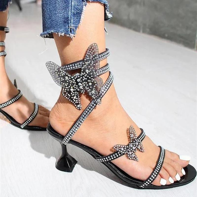 Butterfly Rhinestone Embellished Strappy Slip-on Sandals